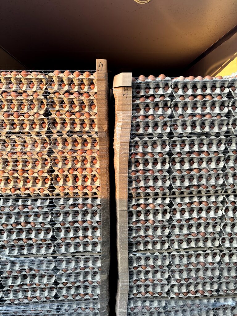 We have our own fleet of vehicles adapted to transport eggs in controlled temperature conditions, which guarantees their freshness and safety.